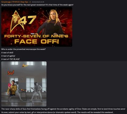 A simple way to summarize active fleet competitions, spotlight Task Force participation, and celebrate recent Action Medal winners. Works well at the start or middle of the week — or even biweekly or monthly.