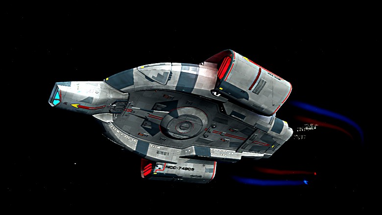 Hull number 74209 was constructed by 40 Eridani A Fleet Yards as, sequentially, the first of a batch of six. However, the small size of the vessels meant all six were worked on simultaneously. She was christened as USS Wasp shortly after being laid down in late 2371, launched in September 2372, and commissioned on April 18th, 2373, as the third of the six ships to enter service. She was constructed alongside sister ships Valiant (NCC-74210), Bennington (NCC-74211), Kumari (NCC-74212), Hotspur (NCC-74213), and Escapade (NCC-74214). Together, these six ships were to form Escort Wing 3.