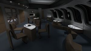 Aboard the Dragonfly, the observation lounge is used as a meeting place for the ship's senior staff and special events or informal gatherings. The room is decorated with various paintings, plants, and items depicting the Dragonfly's lineage.
