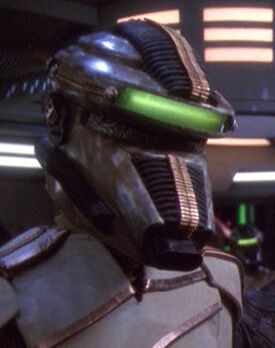 Breen humanoid wearing the commonly seen refrigeration suit.