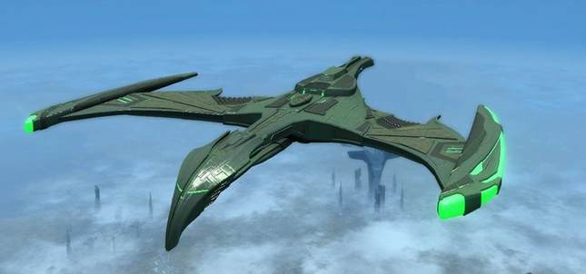 The Dinaes-class warbird is considered a front line destroyer in the Romulan Republic. Born in the early years of the Republic, the Dinaes was designed with simplicity in mind; the ship was meant to be simple to operate, easy to build, and trouble free to maintain, all to help the desperate early Republic fend off the multiple aggressors at their doorstep. Since then, it has become a mainstay of the Romulan Republic fleet.
