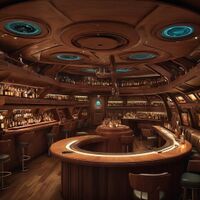 Tucked away in the docking ring, The Quantum Brew is a place of warmth and comfort. The aroma of freshly roasted beans fill the air, inviting patrons to take a temporary pause from their travels. The decor is a rustic charm, with holographic displays of celestial bodies decorating the walls with traditional Bolian tapestries. The owner, a cheerful Bolian named Tuvor, is always ready with a friendly smile and a hot cup of the Nebula's Nectar, a signature blend he claims was inspired by none other than Admiral Janeway herself.