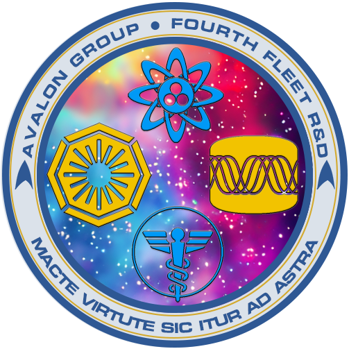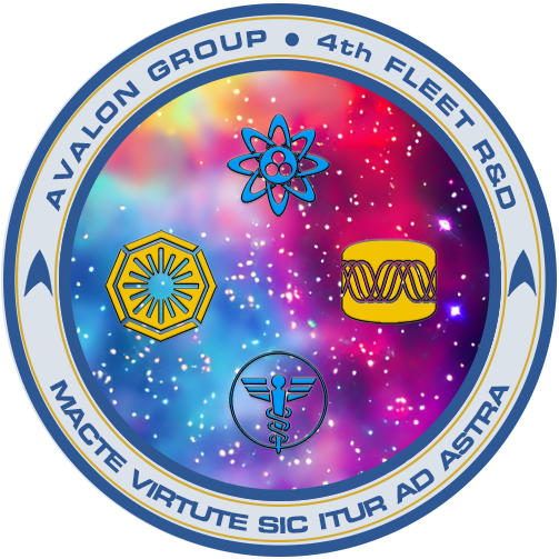 Seal for the Avalon Research & Design Group created by CrimsonTacit, using design elements researched by The Star Trek Design Project and with a background created through Photoshop's Generative AI.