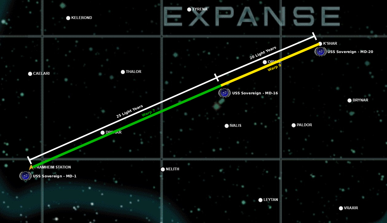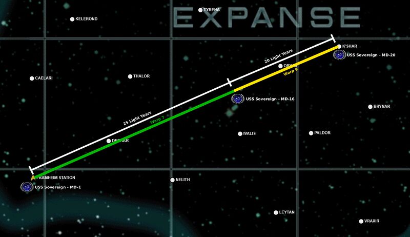 Flight path of the USS Sovereign within the Shackleton Expanse during 2402.