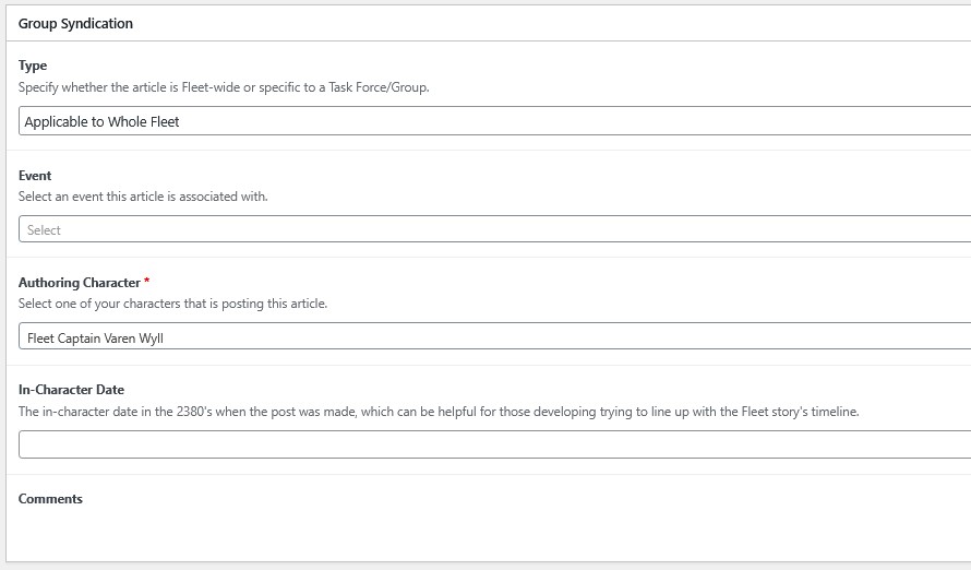 - USS Blythe – The ship, and her largely new crew, have spent the past several weeks traversing multiple sectors, completing different support missions. Recently, they welcomed Lieutenant Ingram on board, a fighter pilot who they saved from freezing to death and placed on active duty due to apparent personnel shortages. She is scheduled to dock at Starbase 400 for a resupply.