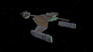 The Romulan configuration of the D7, easily notable by the feathered wings painted onto the hull.