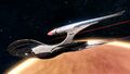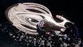 When Utopia Planitia was destroyed in 2385, the evacuation mission was cancelled. The third Odyssey-class ship was nearing completion and the decision was made to fit her out with her original specifications. Odyssey and Verity also returned to dock for the same treatment. The third vessel, now the seventh Federation starship to bear the name Enterprise, launched in 2386.