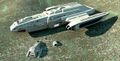 A large cargo bay with ventral access doors allows the Raven-class corvette to carry a substantial amount of material, or to use this space for special mission-specific equipment. There is also a small aft shuttlebay capable of holding a single shuttlepod. These vessels are capable of landing on a planet's surface and can provide a suitable base of operations for longer planetary expeditions.