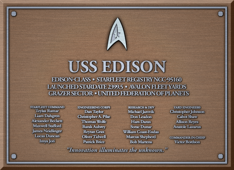 The USS Edison NCC-95160 is an Edison-class heavy frigate.