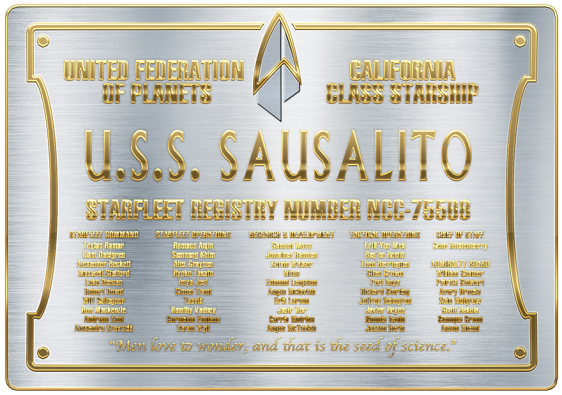 While many of the California-class cruisers are set up for one of four variants (Science, Command, Engineering or Medical support) the Sausalito typically runs close to a starbase so that it can be reconfigured to assist in any of these areas. In order to assist in so many areas, the ship has extra large cargo bays, several extra science labs and stations and quarters to accommodate extra science personnel.